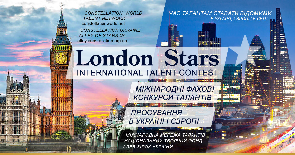 Національна творча екосистема Алея Зірок України і міжнародна мережа Constellation World Talent Network в конкурсному потоці LONDON STARS проводить міжнародні фахові двотурові конкурси: